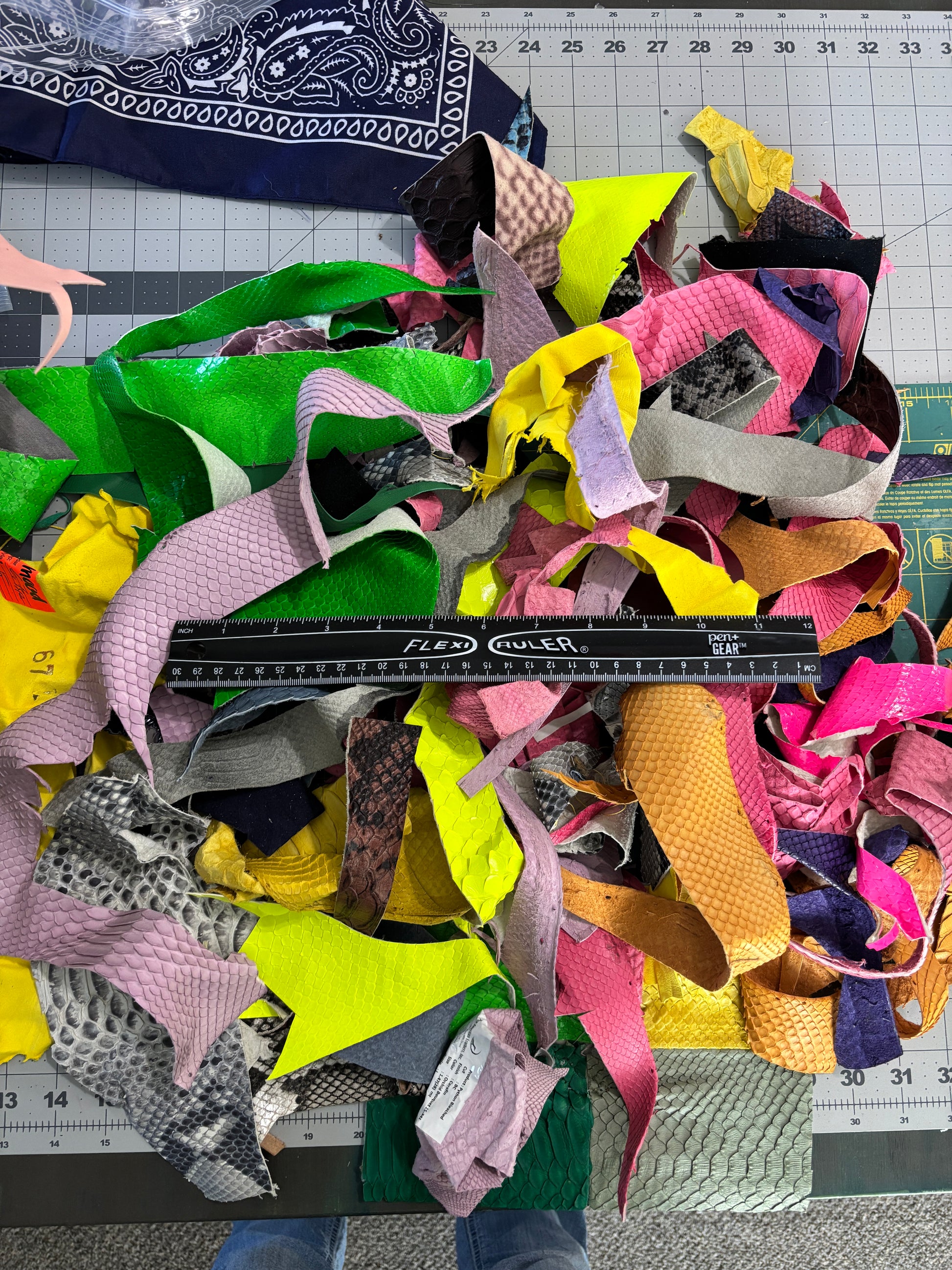 Scraps of Leather and Python Snake for Crafting, 1.4 pounds of High End Supple Leather