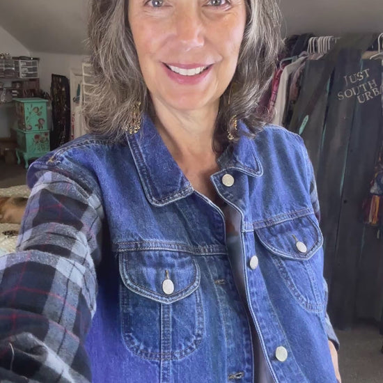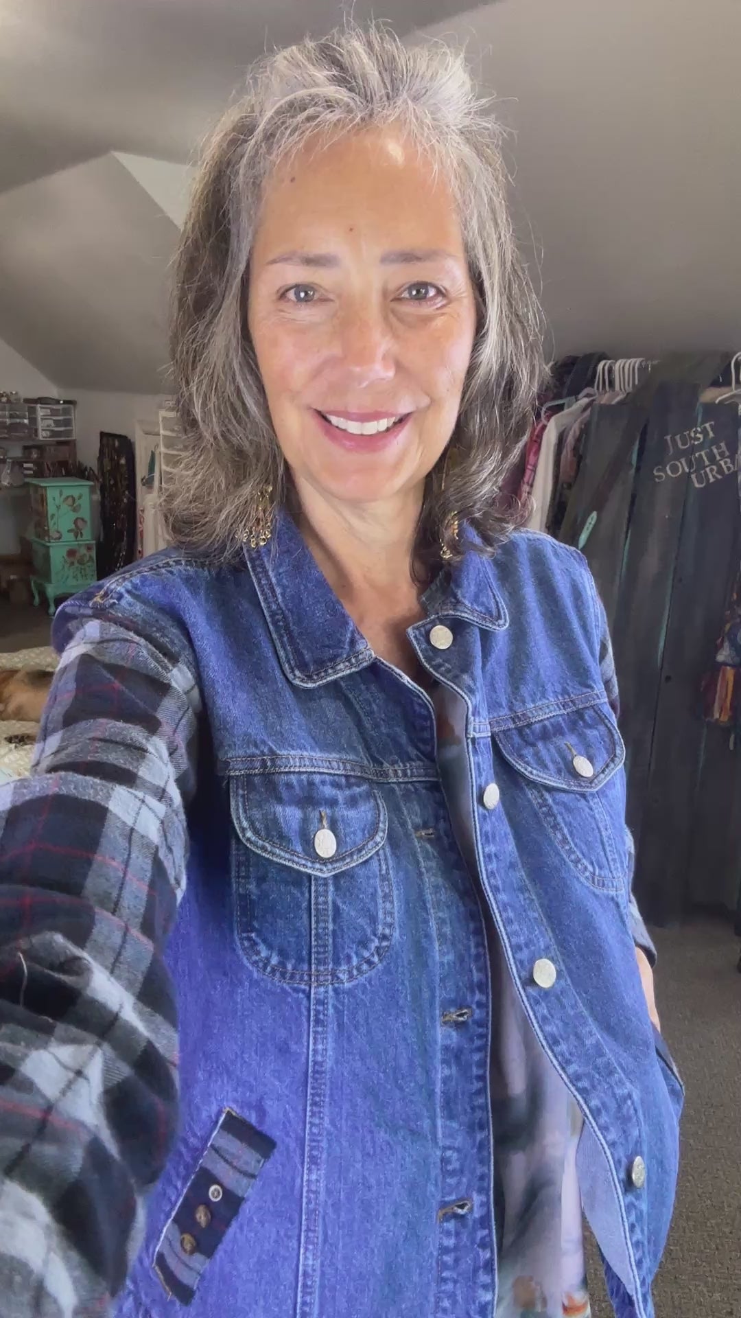 Upcycled Demin and Flannel Jacket, Cozy for Fall, Country, Western, Rustic, Summer Concerts